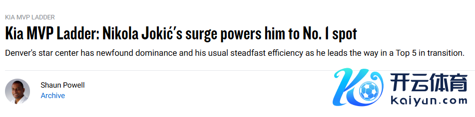 北京本领11月14日,NBA官网更新了MVP排名榜,约基奇升至首位。和上周同样,前五位依然王人是海外球员。以下是具体排名息争析——